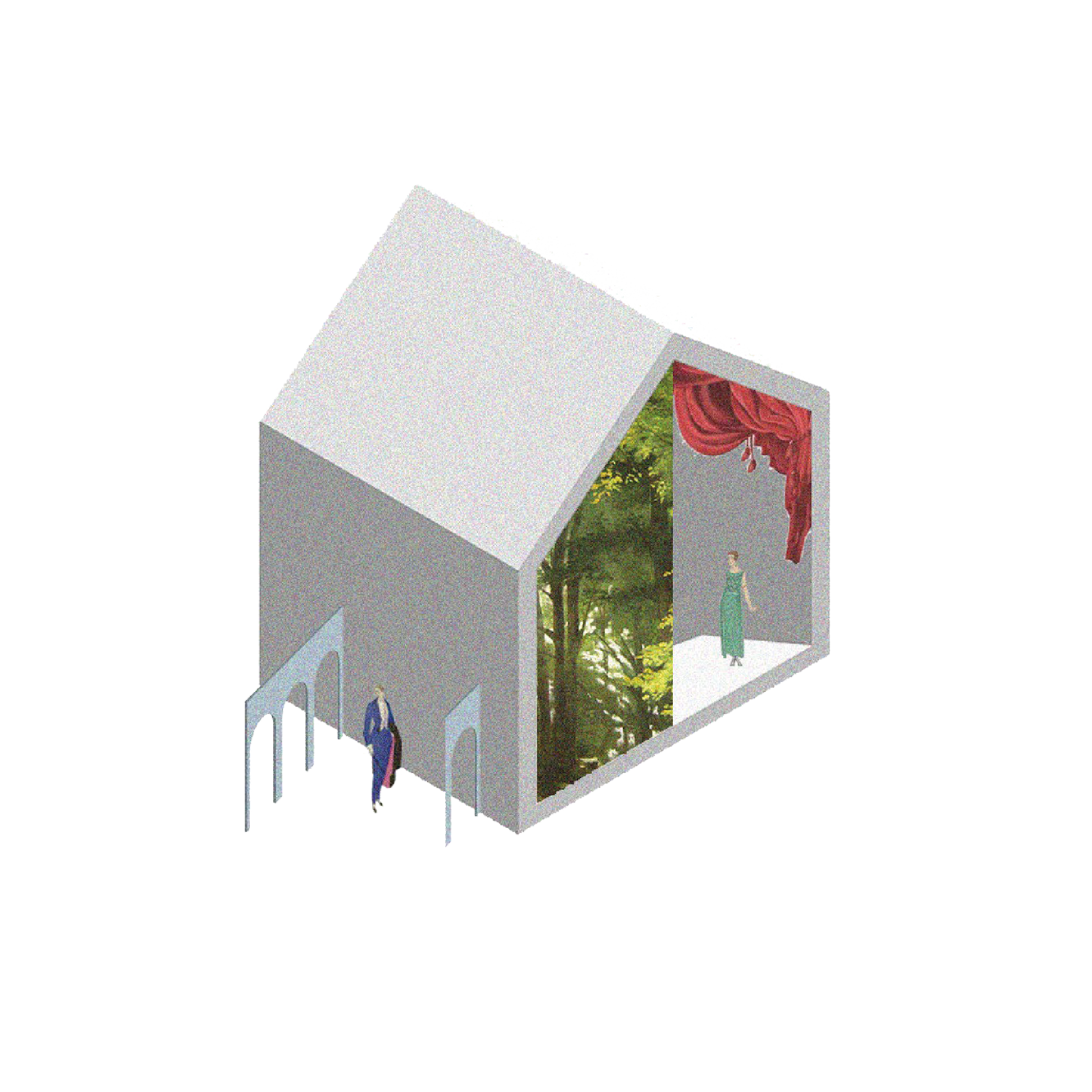 These cultural waste materials as examples of the finishing layer of the building- the inner most layer of architecture. This layer is subject to an ongoing cycle of change, influenced by trends, change of use, change of tennancy. It is the layer of the building which we, as architects, have the least control over and yet it can be the most influential. Once of the key aspects of the renovation strategy draws on parallels between this finishing layer in architecture and the changing nature of the set as the finishing layer of a theatrical performance. Therefore, the proposal embraces this layer, encouraging the building to be constantly changed and updated with the exchange of cultural waste materials.