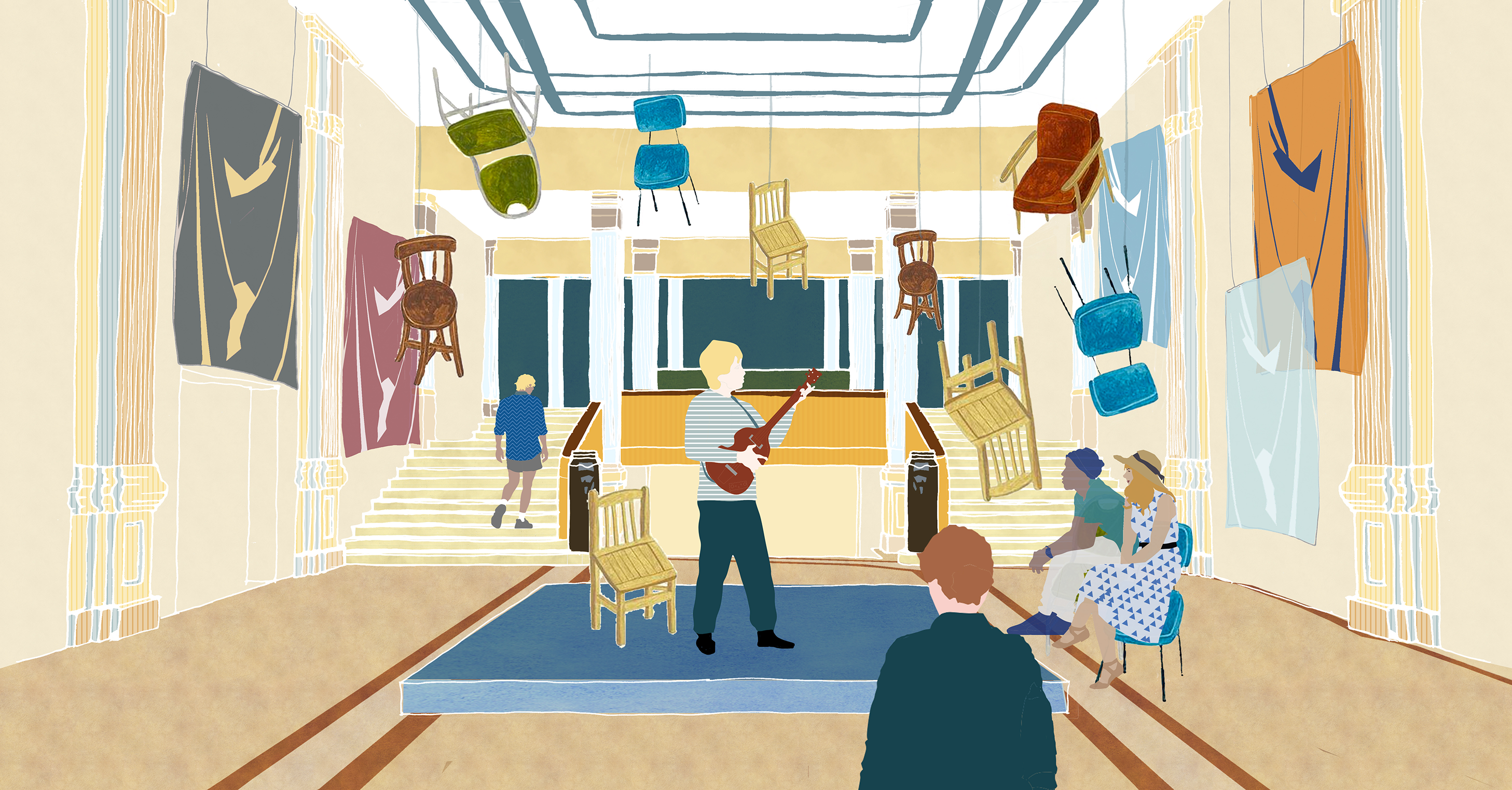 The project proposes a subtle and low budget renovation of the existing Granada Theatre in Walthamstow, to facilitate a community of local people around the exchange of cultural materials and in turn celebrating Walthamstow as a cultural district. The site is surrounded by local activity and the fast paced environment of the changing East London High Street. So, in embracing this cycle of change, the design seeks to reference this through facilitating the exchange and showcase of cultural waste materials, predominantly from the production industry. Through the exchange, repair and showcasing of these artefacts, the theatre becomes a place for local people to share resources in a low economic pressured environment, and becomes an attraction for local businesses as a market for these materials, as well as to the public as an ever-changing museum.